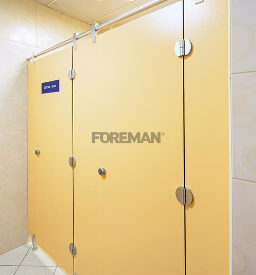 Shower rooms are equipped with FOREMAN® shower partitions, and with sanitary cabins/ WC CUBICLES installed in toilets.